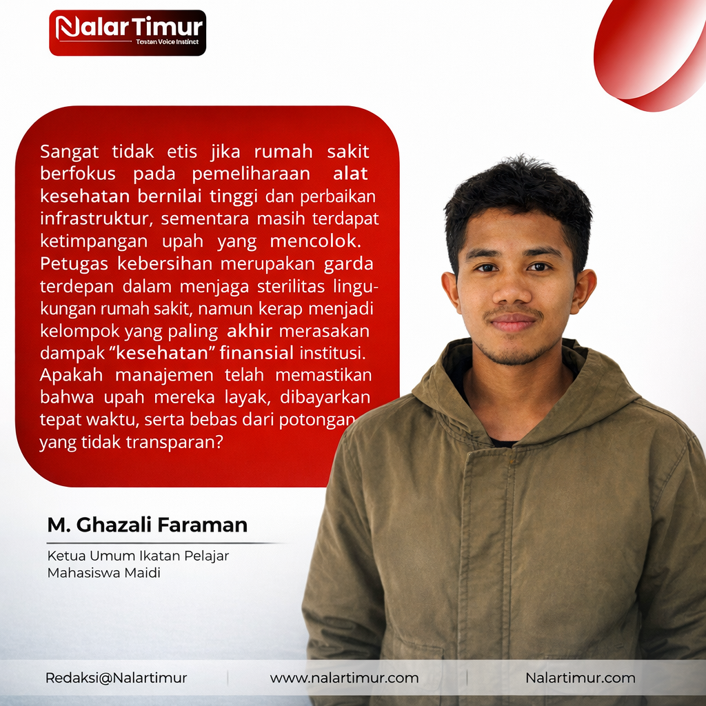 Sangat tidak etis jika rumah sakit berfokus pada pemeliharaan alat kesehatan bernilai tinggi dan perbaikan infrastruktur, sementara masih terdapat ketimpangan upah yang mencolok. Petugas kebersihan merupakan garda terdepan dalam menjaga sterilitas lingkungan rumah sakit, namun kerap menjadi kelompok yang paling akhir merasakan dampak “kesehatan” finansial institusi. Apakah manajemen telah memastikan bahwa upah mereka layak, dibayarkan tepat waktu, serta bebas dari potongan yang tidak transparan?